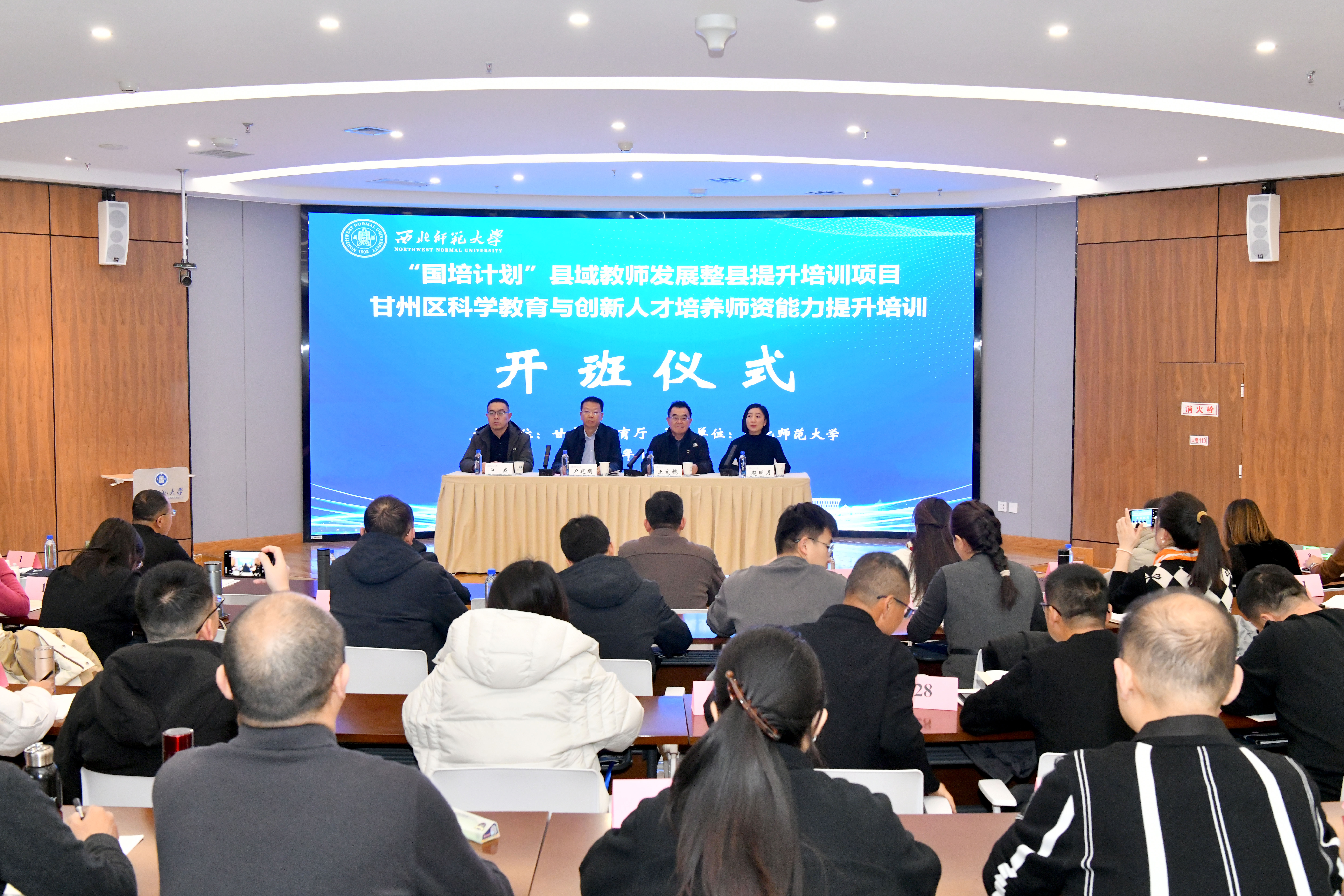 11月23日,“国培计划(2025)”县域教师发展整县提升培训项目——甘州区科学教育与创新人才培养师资能力提升培训开班仪式在西北师范大学国际学术交流中心顺利举办。甘州区教育局党组成员、副局长、区政府教育总督学卢建明,甘肃省教师发展中心(甘肃教师教育学院)常务副主任王文槐出席仪式并讲话,甘州区教育局党政办副主任宁威及来自甘州区中小学科学教育与创新人才辅导教师岗位的50位骨干教师参加,仪式由西北师范大学继续教育学院教师主持。