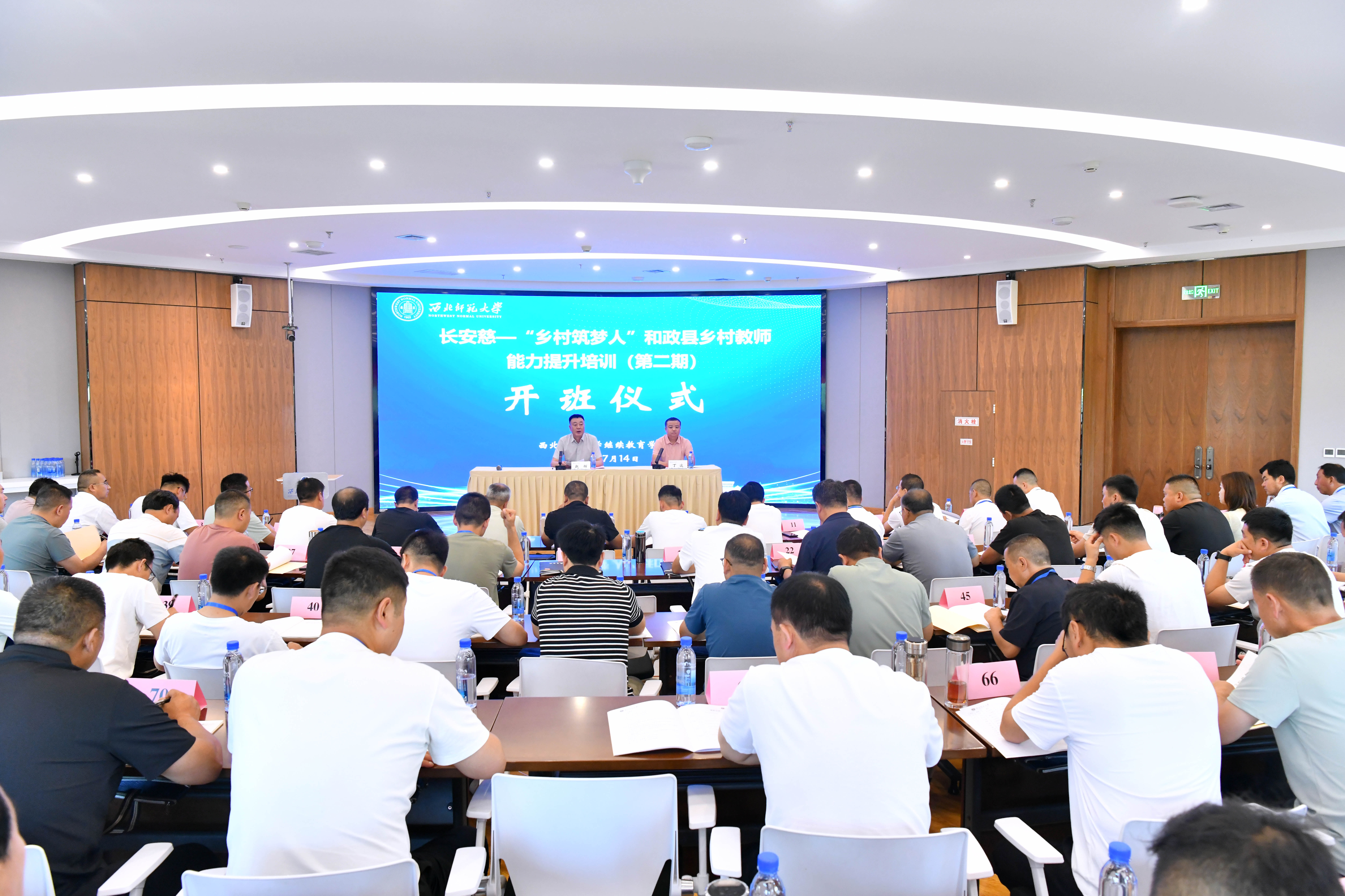 2025年7月14日上午,和政县乡村教师能力提升培训(第二期)项目在西北师范大学开班。继续教育学院院长赵辉出席开班仪式并讲话,来自和政县的92名小学校长及继续教育学院相关工作人员参加开班仪式,开班仪式由继续教育学院培训中心负责人主持。