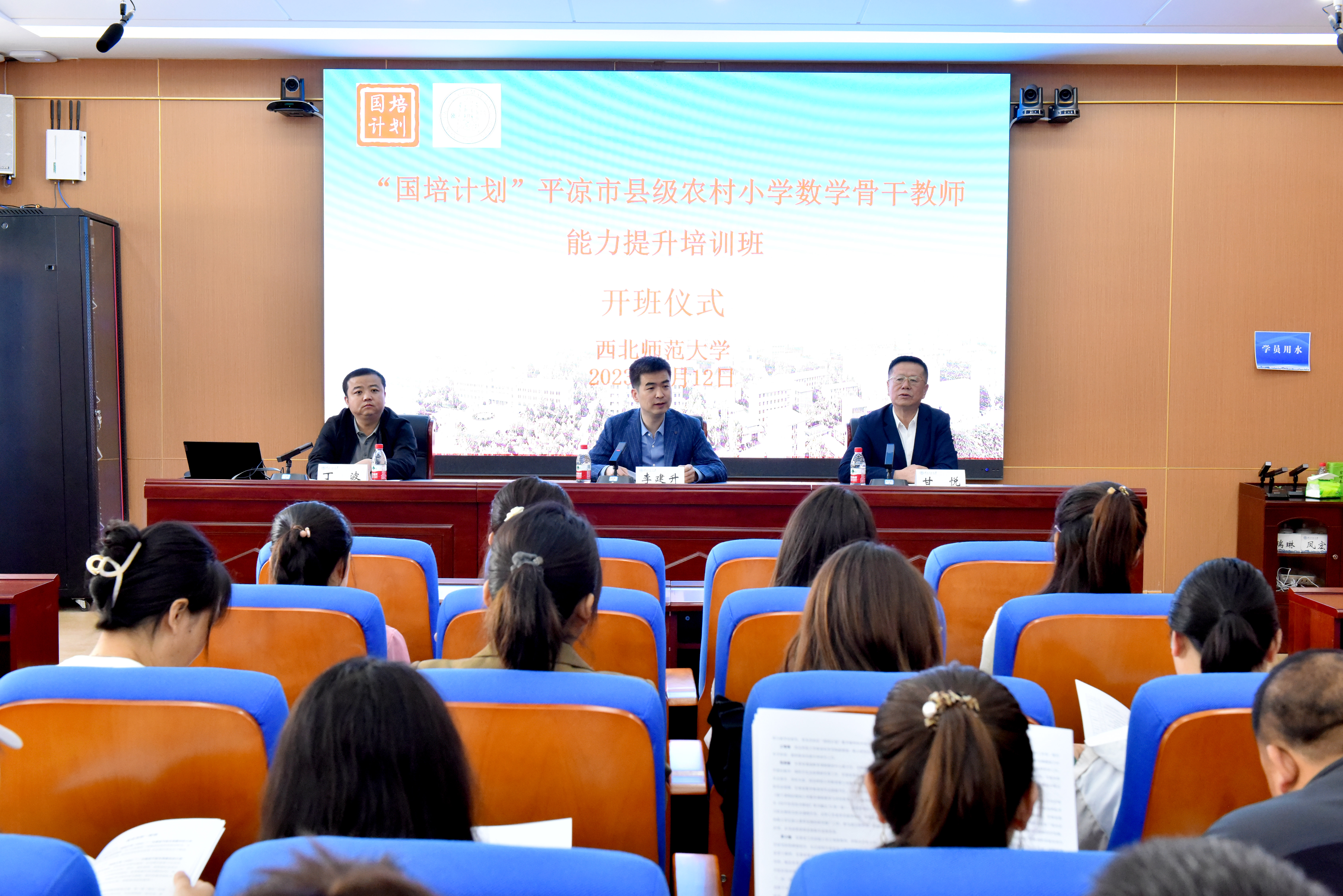 2023年5月12日上午,由西北师范大学继续教育学院承办的“国培计划(2022)”平凉市县级农村小学数学骨干教师能力提升培训项目在知行校区南风楼106教室顺利开班。