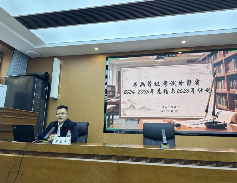 2025年11月17日,书画等级考试甘肃省考试办公室2025年下半年考务工作会议在西北师范大学顺利召开。会议由西北师范大学继续教育学院党委书记陈科主持,继续教育学院院长赵辉致辞,省考试办公室相关负责人、各考点负责人及考务工作人员通过线上线下方式参会。