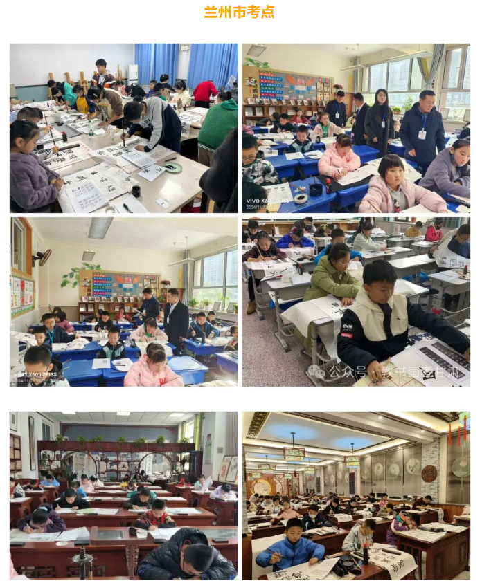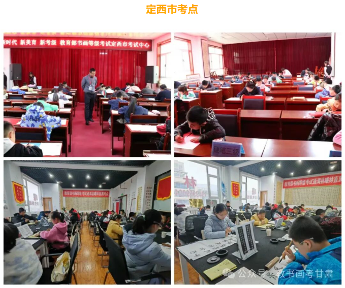11月23日—24日,教育部教育考试院书画等级考试在甘肃考区顺利举行。此次考试在兰州市、天水市、白银市、定西市、庆阳市、金昌市、武威市、陇南市、平凉市、酒泉市、嘉峪关市、张掖市、临夏州、甘南州共14个市州设置了考点,涉及软笔书法、硬笔书法、素描、国画(花鸟、山水、人物)、动漫画、色彩8个科目。