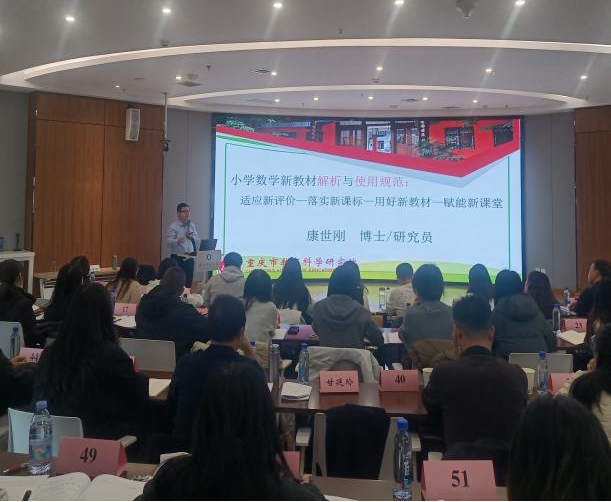 重庆市教育科学研究院基础教育研究所康世刚研究员倡导“让问题在课堂上多‘飘一会儿’”,强调将思考和发现的权利还给学生;七里河小学崔旭老师围绕“诗意数学”,介绍了在数学教育中传递“以心育心、以爱传爱”的具体思路;孟霞老师结合案例展示了AI工具在数学教学备课、教学、作业评价和教研活动中的应用方法。