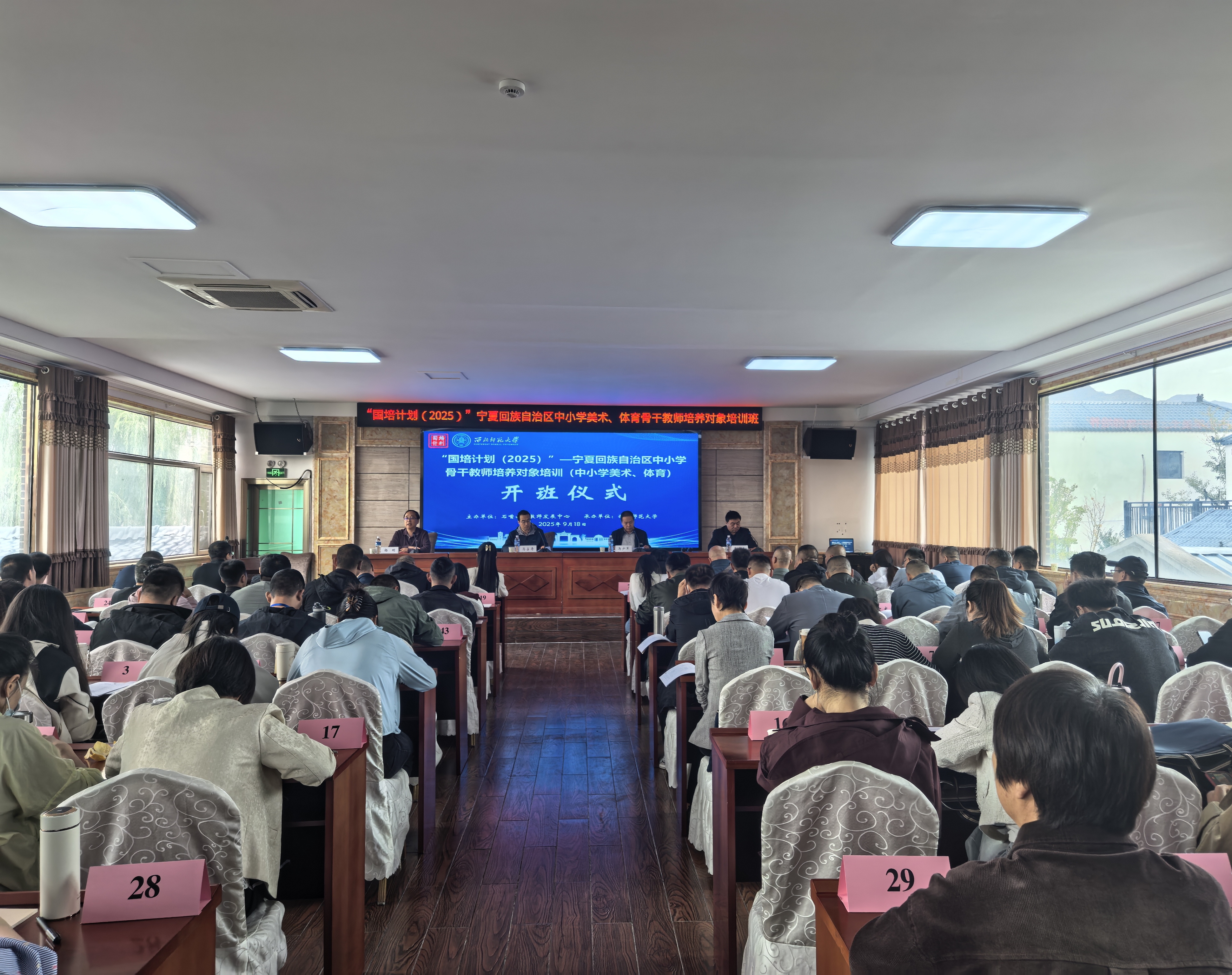 2025年9月18日,“国培计划(2025)”宁夏回族自治区中小学美术、体育与健康骨干教师培养对象培训开班。继续教育学院副院长马占寿、美术学院教授杨明、石嘴山市教师发展中心副主任马少军出席开班仪式并讲话,来自宁夏的100名中小学美术和体育与健康骨干教师参加开班仪式,培训班由继续教育学院培训中心乌恩夫主持。